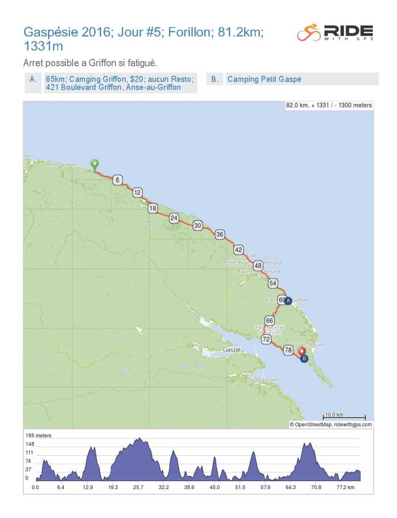 • Gaspésie 2016; Jour #5; 63.7km; 1264m; Pointe Frégate/Anse Griffon